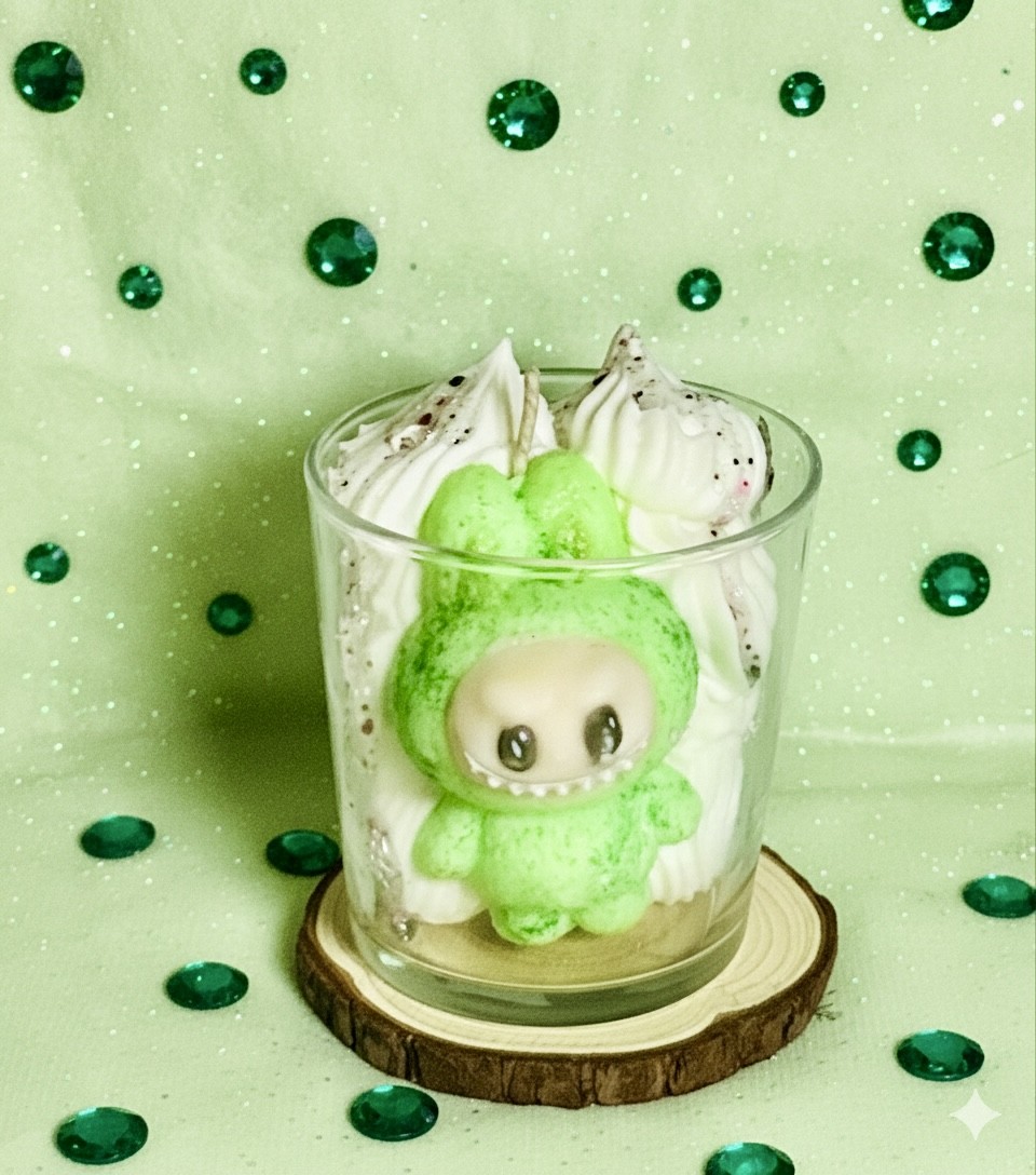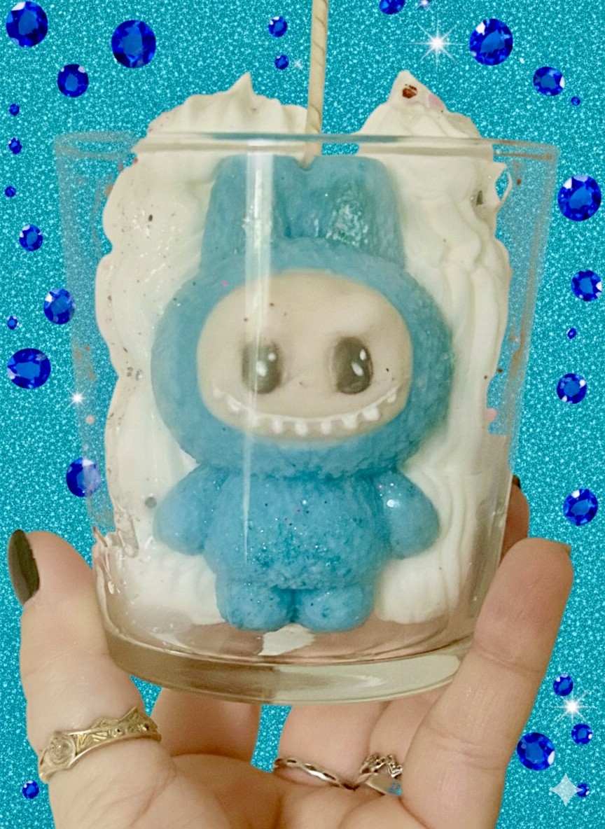 Laissez-vous envoûter par cette création artisanale unique. Sous sa chantilly crémeuse et scintillante de mille feux, se cache notre petit monstre aux grands yeux perçants. Plus qu'une simple bougie, c'est un véritable objet de décoration qui apporte une touche de fantaisie et de couleur à votre cocon.