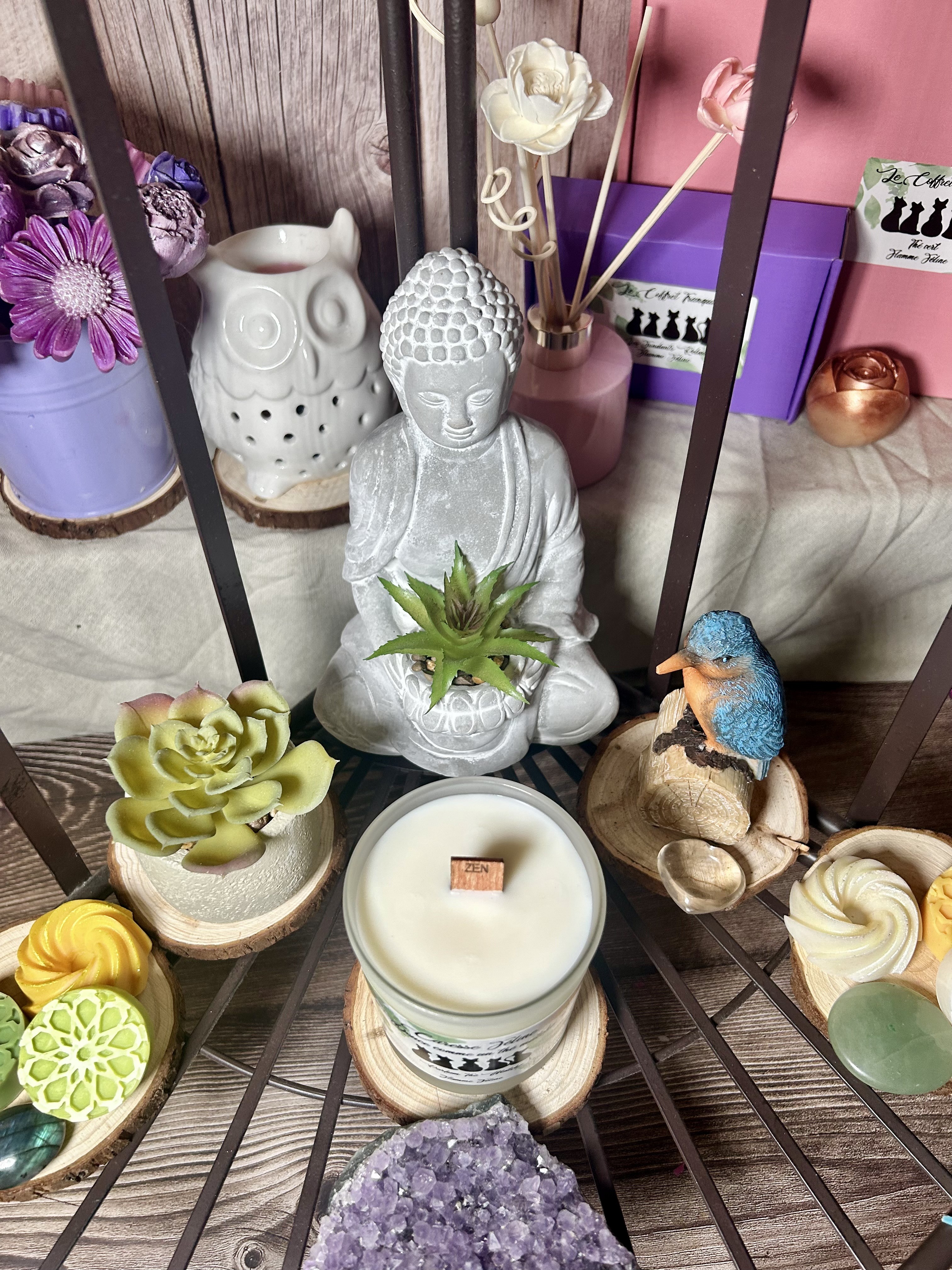 La flamme danse lentement, la mèche en bois de cerisier crépite doucement, et le temps semble soudain ralentir. L’espace se remplit d’une chaleur réconfortante, presque familière… comme un refuge.