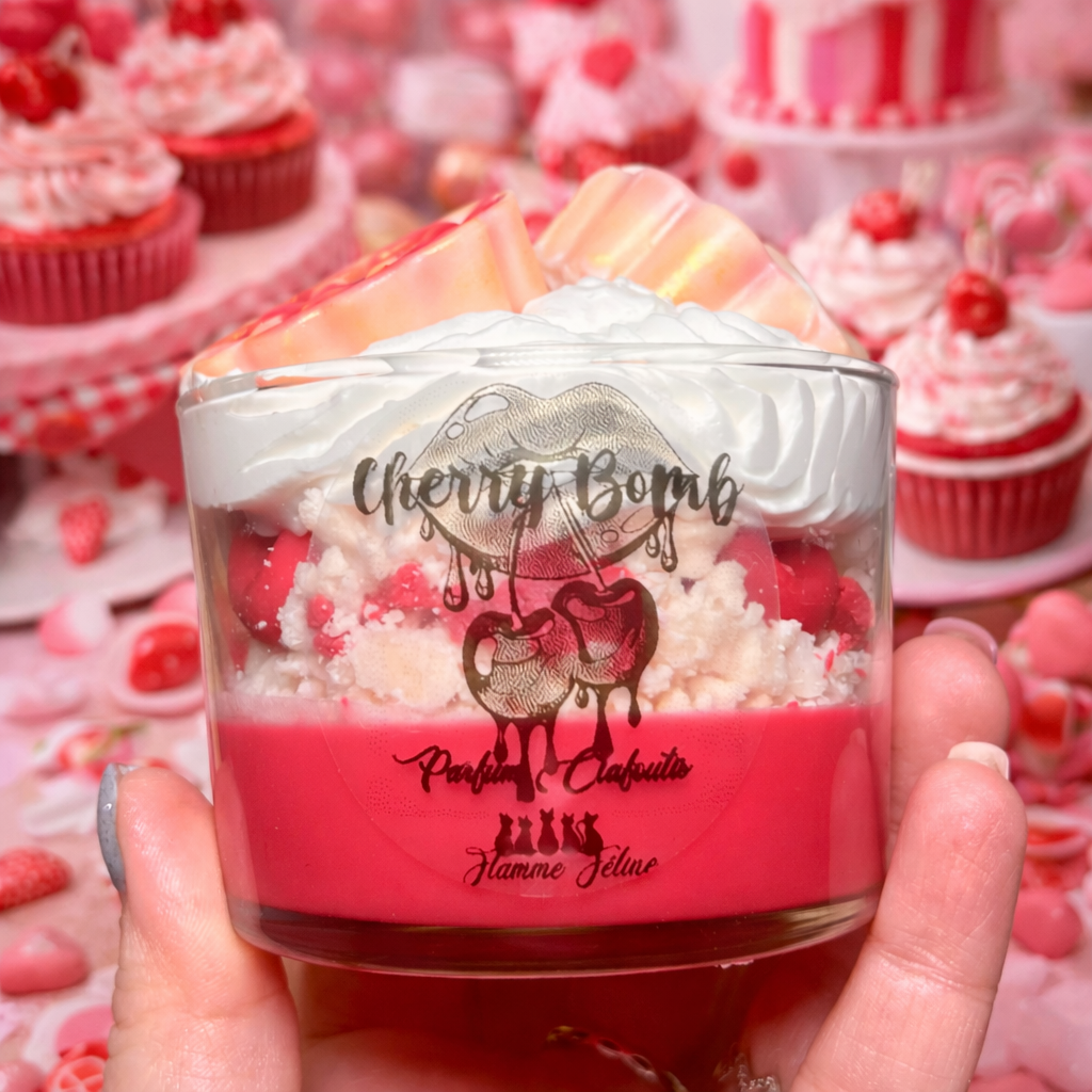 Dès l’allumage, Cherry Bomb diffuse un parfum de cerises rouges, juteuses et légèrement acidulées, rappelant un clafoutis tout juste sorti du four.