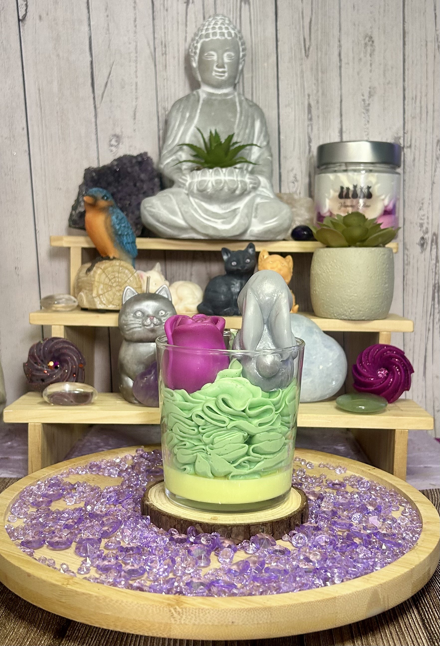• Un lit de chantilly menthe à l'eau parsemé de paillettes pour briller de mille feux une fois la mèche allumée.