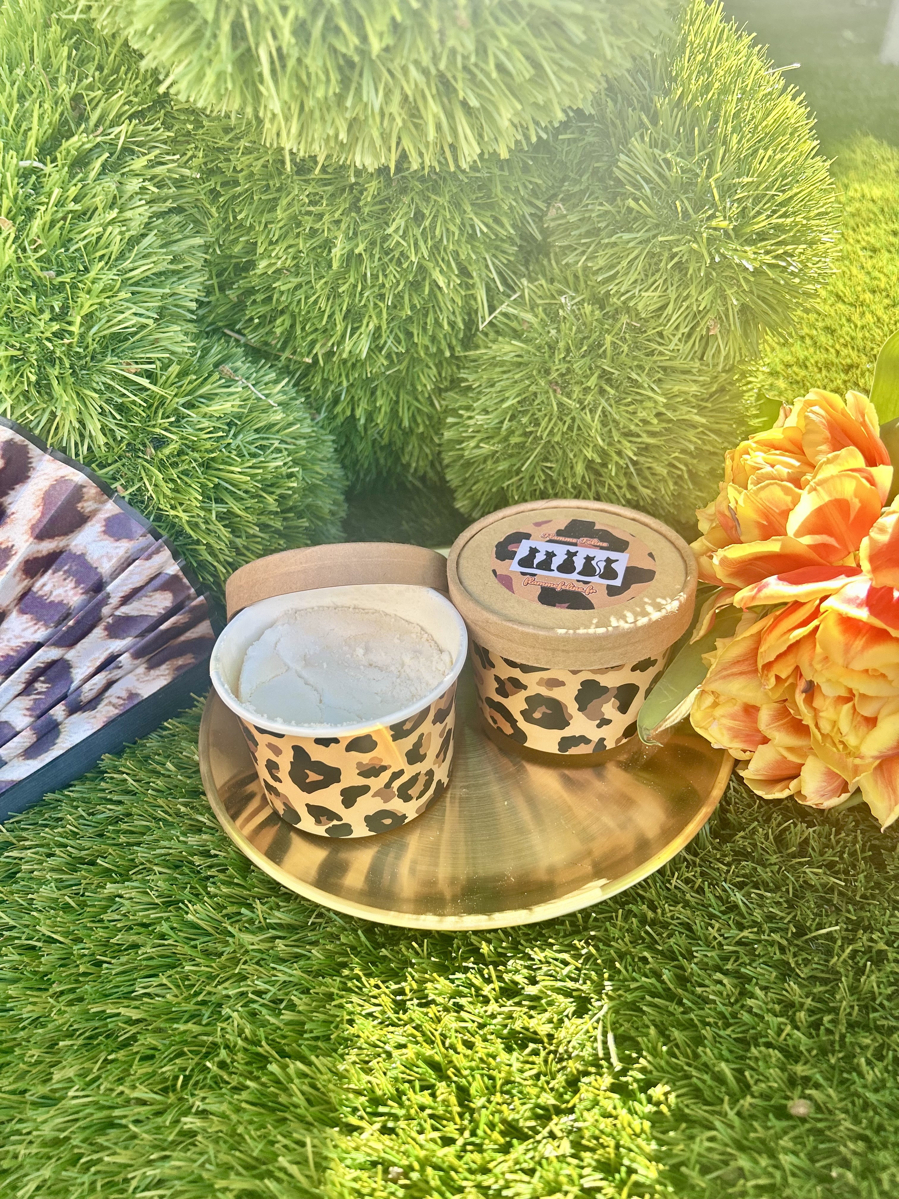Transformez la corvée de ménage en un moment de pur plaisir olfactif ! Notre poudre d’aspirateur Flamme Féline assainit et désodorise instantanément votre intérieur. Habillée de son design léopard et de son petit pot en kraft naturel