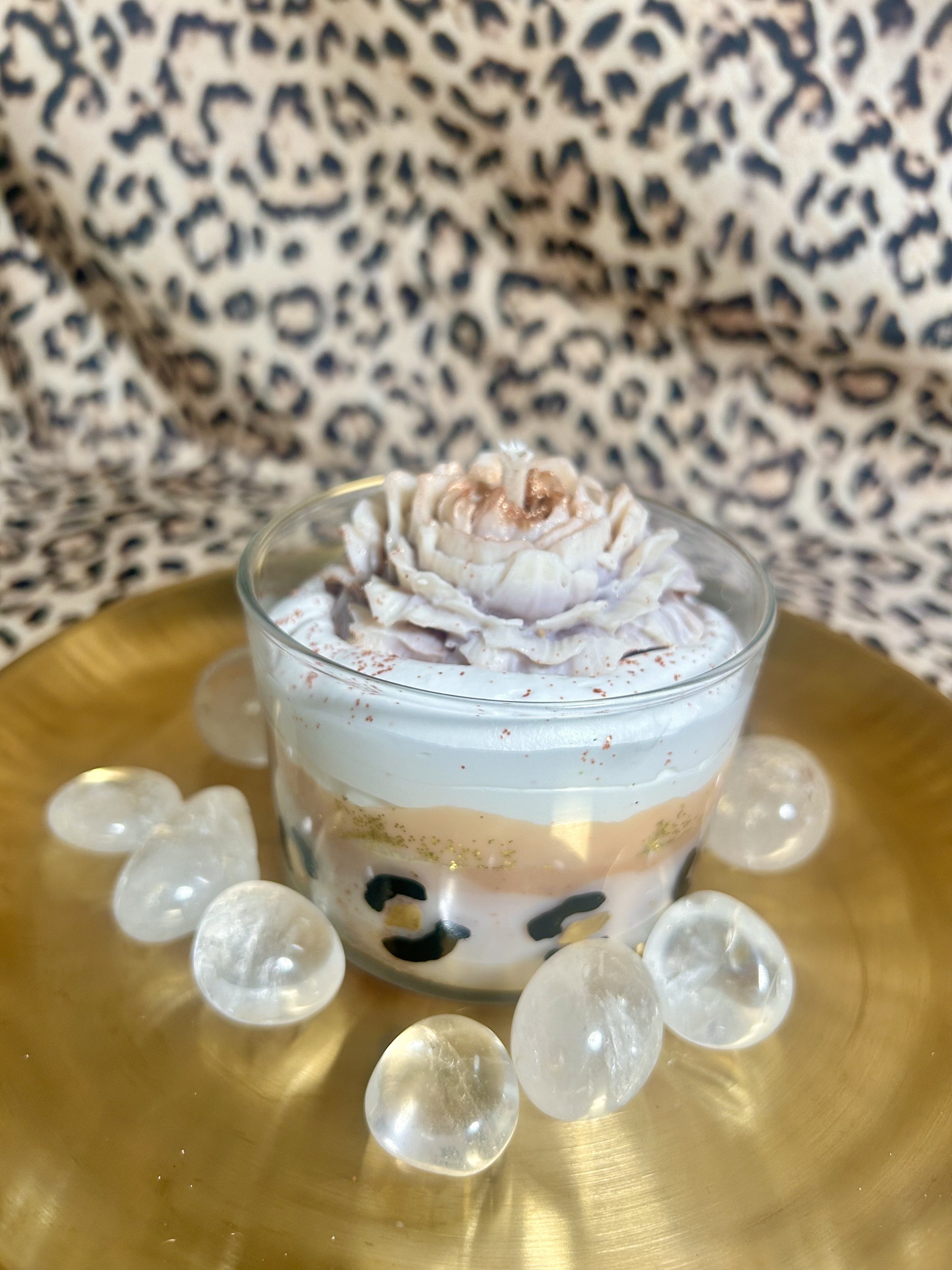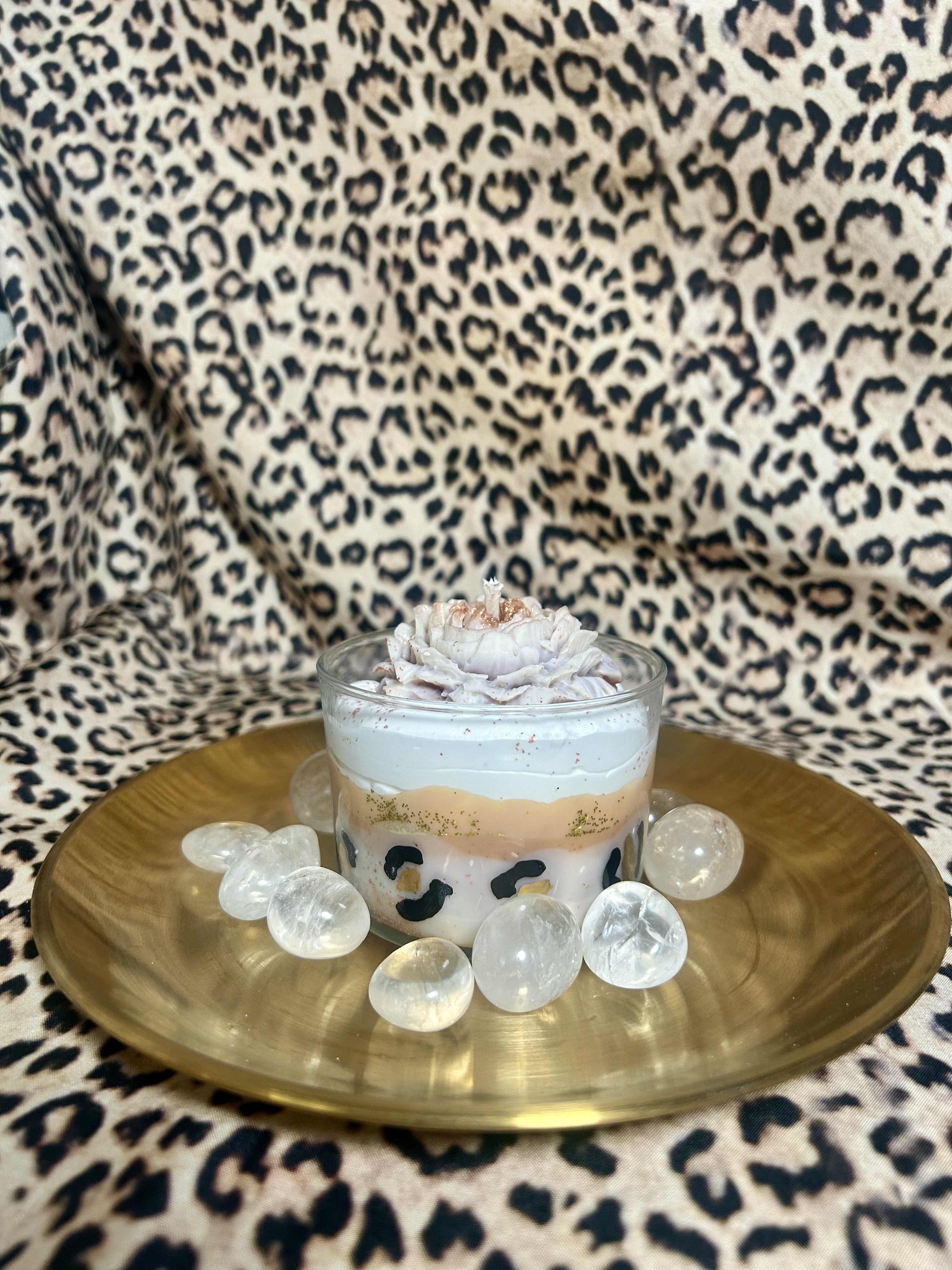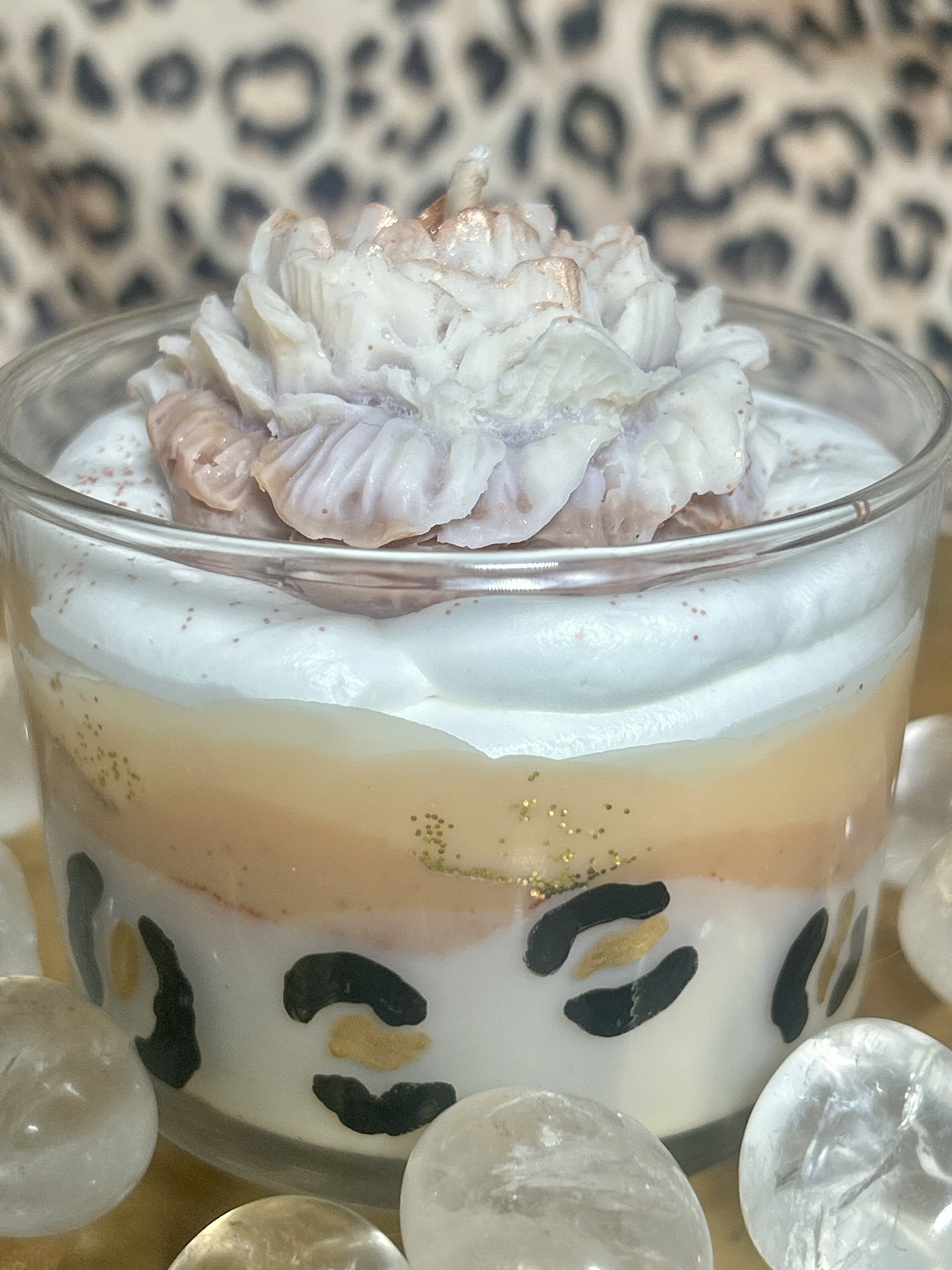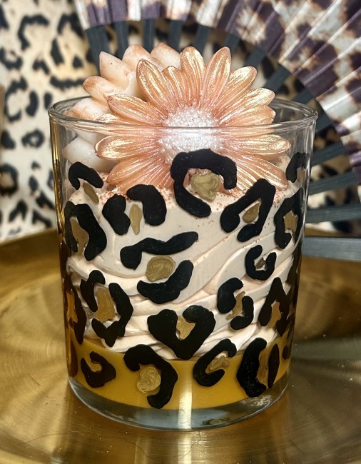 RevĂȘtue d'un motif lĂ©opard ultra-tendance, cette bougie de 150g ( 25 h min de bonheur olfactif ) en cire de soja naturelle n'est pas lĂ pour faire de la figuration. DĂšs l'allumage, elle libĂšre un parfum envoĂ»tant de Pivoine, transformant la maison en un cocon floral et chic. Câest frais, câest doux, câest sauvage... tout comme elle !